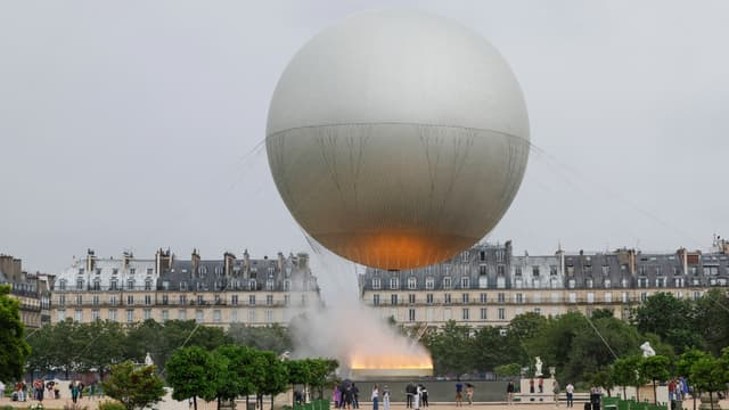화석 연료를 전혀 사용하지 않는 열기구 모양의 성화대는 100% 전기로 가동된다고 한다.
